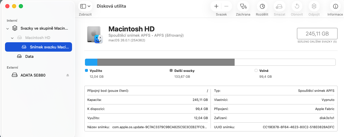 Ahoj, vlastním MAC MINI M4 256GB, chtěl jsem se zeptat ne velikost uložiště, mám obsazeno cca 12GB, ale system ukazuje volných jen cca 99GB a pak ještě ukazuje další svazky 133GB jak mohu navišit volné uložište? Děkuji