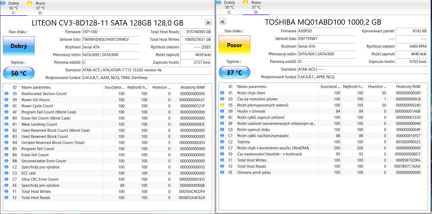 Takže to více méně znamená, že disk odchází? Btw. lze věřit hodnotám "Počet zapnutí" a "Zapnuto hodin"? Nemohu si pomoct, ale nesedí mi. NTB mám 4 roky a pár měsíců, abych za tu dobu zapnul NTB tolikrát, tj. v průměru tak 3 spuštění na den... (jedině že se jako zapnutí počítá i p...