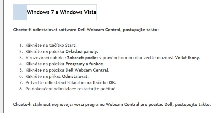 Problem je, ze v programech zadny "Dell Webcam Central" neni viz bod c. 5.