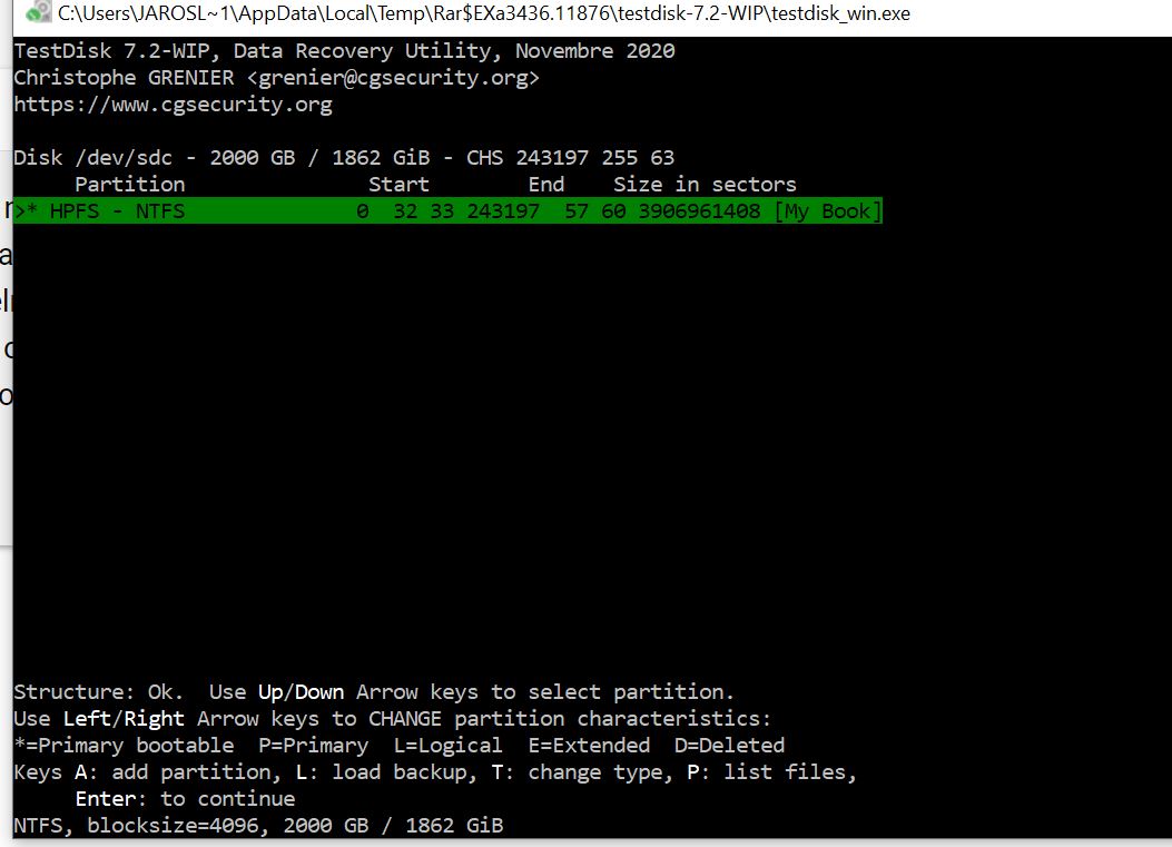 tohle je seznam souborů na disku testdisk.2.JPG Dodatečně přidáno po 2 minutách 31 vteřinách: ano jako jedno písmeno Dodatečně přidáno po 5 minutách 41 vteřinách: po rozkliknutí My Book jsem viděl složky - filmy,hudba,foto.live concerts Dodatečně přidáno po 3 hodinách 5 minutách 26 vteřinách: Poradí...