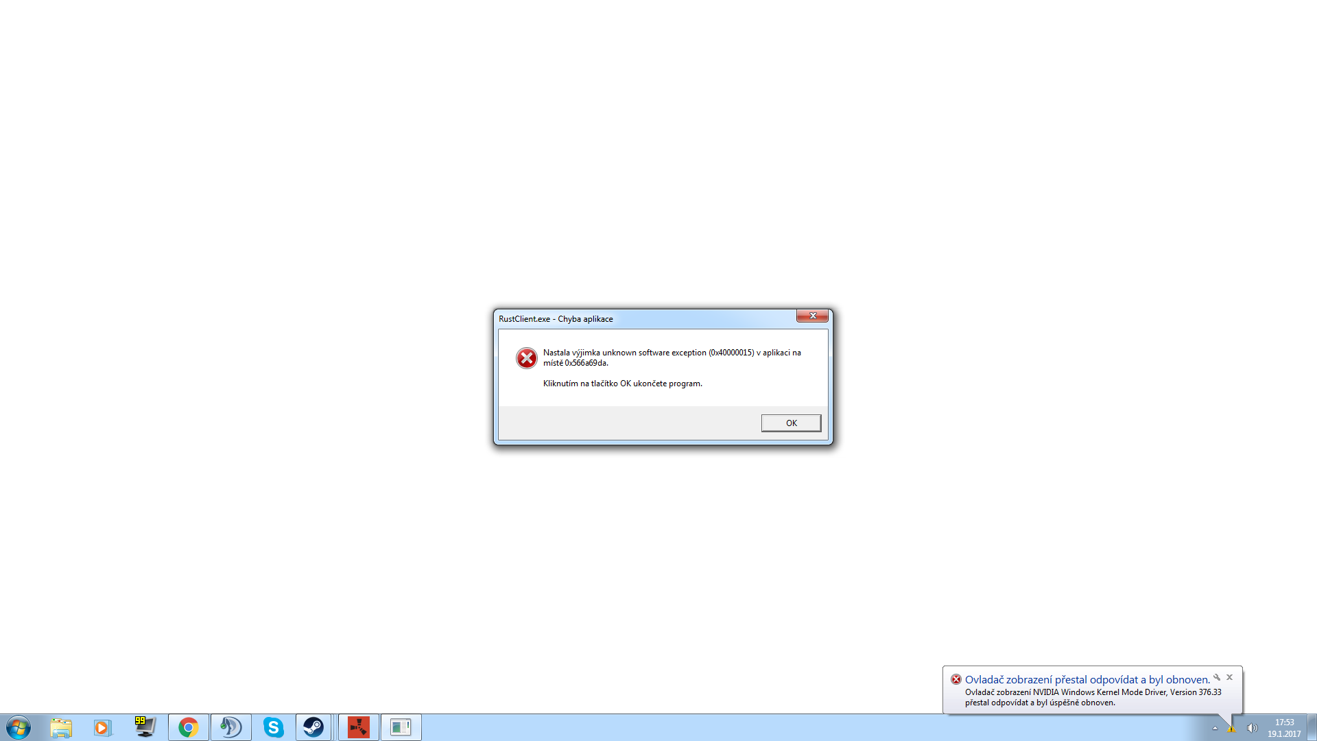 Při zapnutí hry The Rust hraju a zanedlouho to hodí tuto hlášku a hra mi spadne, nevíte někdo co s tím? Děkuji za všechny rady :D ddd.png v událostech chyba: A TDR has been detected. The application must close. Error code: 7 (pid=6236 tid=2092 rustclient.exe 64bit) Visit http://nvidia.custhelp.com/a...