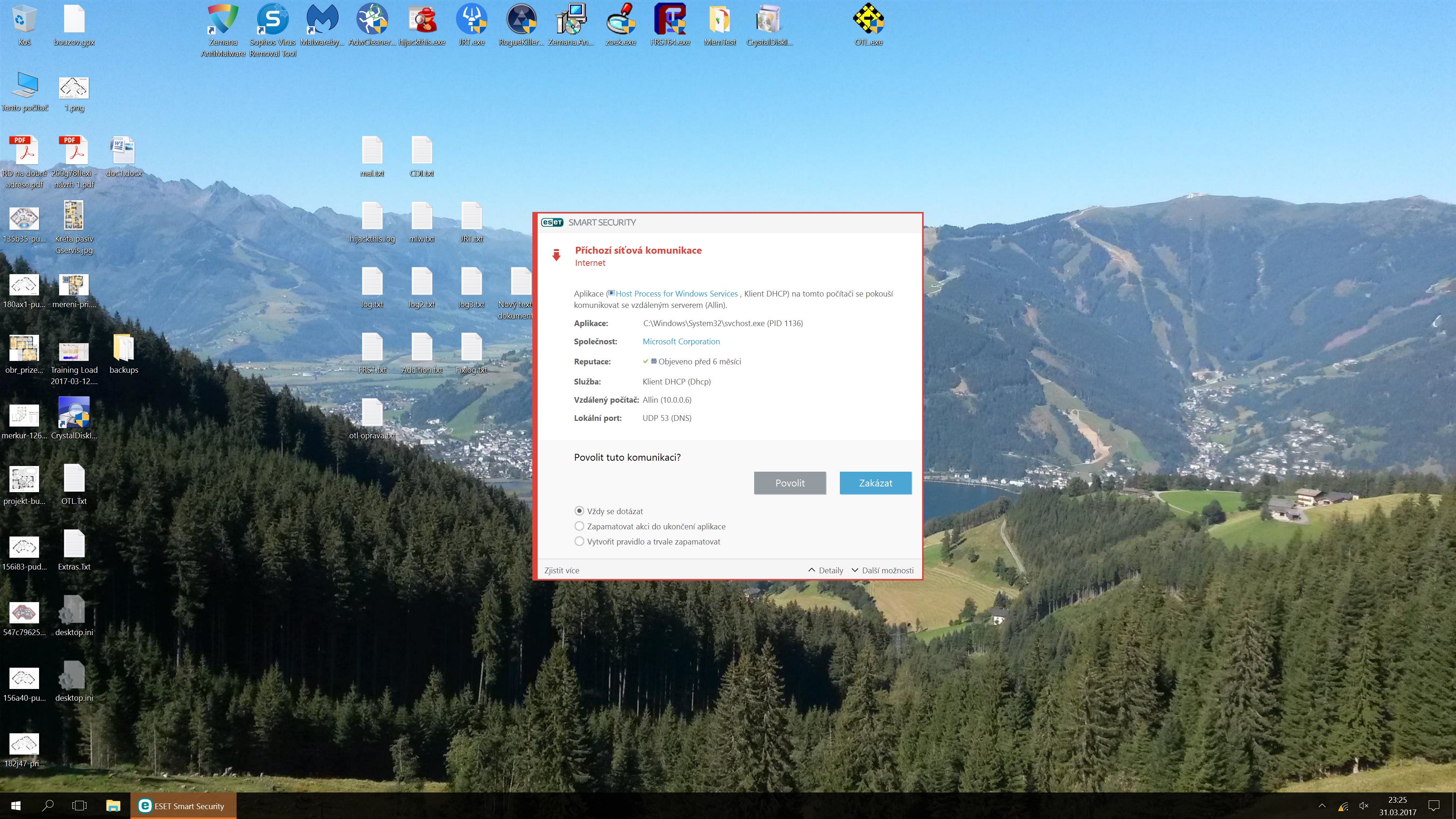 Chyba i po opravě v OTL. Přikládám znova obrázek: CHYBA.jpg Pokud zvolím nějakou volbu, chyba vyskočí okamžitě znova, pouze pro jinou aplikaci a většinou s názvem "Odchozí síťová komunikace" Protože internet nefunguje, zkopíroval jsem "tapitdata.bin" na flash a na virustotal nahr...
