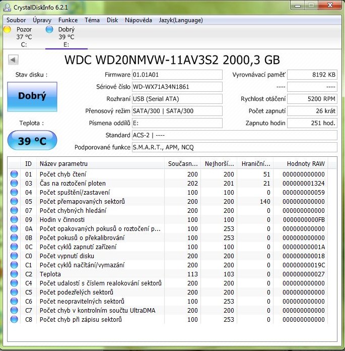 Toto ukazuje správa disků (snad jsem to dobře vyfotil, jiné info jsem tam nenašel) správa disků.jpg --- Doplnění předchozího příspěvku (Pon Lis 24, 2014 9:56 pm) ---CrystalDiskInfo na interním disku v ntb označil "Počet přemapovaných sektorů"... Nevím, co to přesně znamená, ale asi to na n...