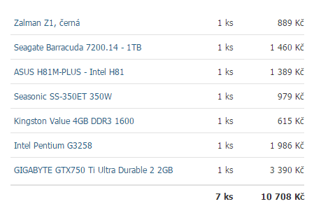 Odkaz na sestavu s aktuální cenou: http://www.czc.cz/ehfbd9ne40jc4b23app4biul14/seznam
