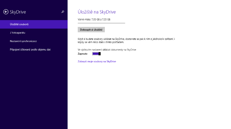 SkyDrive měl být hluboce integrován již do původních Windows 8, ale jako úložiště souborů hrál v čisté instalaci systému zanedbatelnou roli. Microsoft připravil jen poměrně primitivní dotykovou aplikaci pro přístup k souborům v internetovém úložišti. V desktopovém prostředí byste SkyDrive hledali marně. Stále tak bylo třeba doinstalovat samostatnou synchronizační utilitu stejně jako ve starších Windows 7 či Windows Vista.