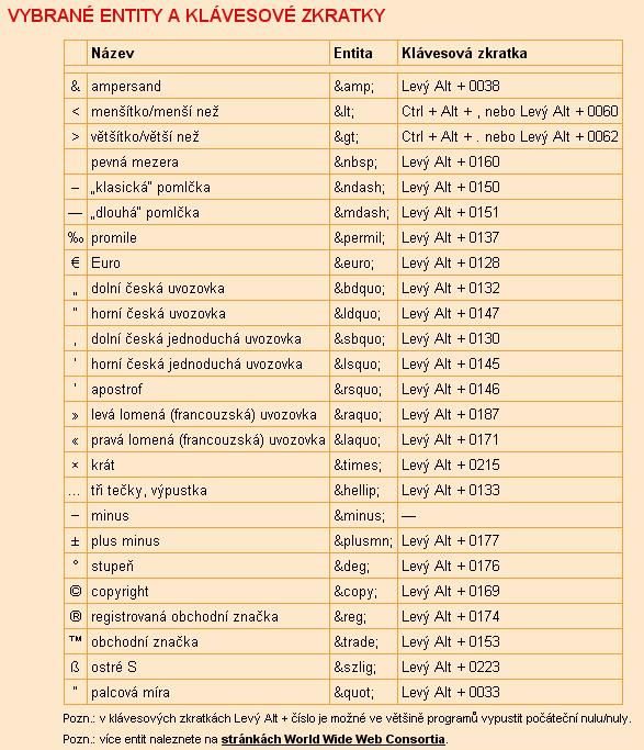 1.3. Zkratky pro zadání znaků jež nejsou dostupné na běžné klávesnici