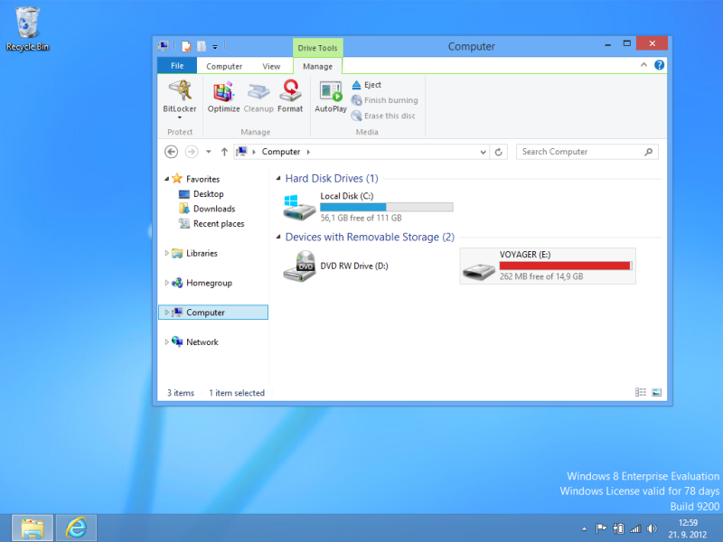 V klasickém uživatelském rozhraní čeká na uživatele ještě jedno překvapení. Nenáviděný i vychvalovaný pás karet Ribbon totiž pronikl už i do Průzkumníka. Již ve Windows 7 se objevil v některých aplikacích z příslušenství systému. Ve Windows 8 je jím vybaven i Průzkumník. Microsoft říká, že chtěl jednoduše zpřístupnit více jak dvě stovky funkcí, které Průzkumník má a uživatelé o nich často ani nevědí, pročež prý zbytečně volí alternativní programy.