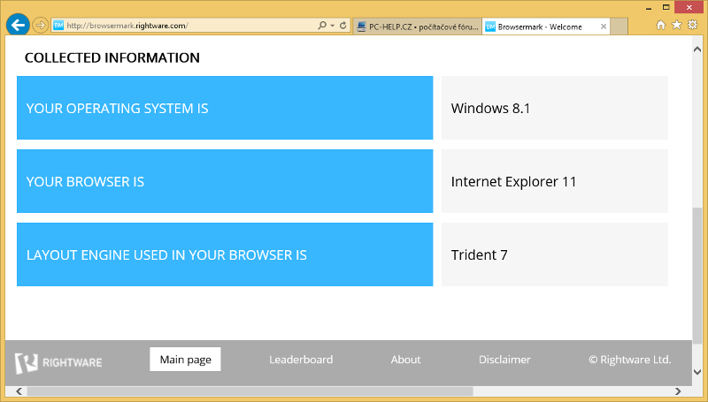 Mnohem lépe je na tom Internet Explorer. Jeho výhodou je samozřejmě možnost co nejvyšší optimalizace pro Windows. Nicméně Microsoft v posledních letech na svém prohlížeči výrazně zapracoval. Na první pohled to tak nemusí vypadat, ale technologické pozadí na tom není vůbec špatně, což se pozitivně odráží i do výkonnostních disciplín.