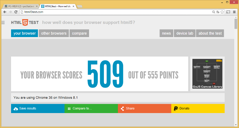 Nejnovější Mozilla Firefox (31.0) se drží v závěsu se 457 body. Z prohlížečů, kterým se v seriálu dlouhodobě věnujeme, třetí příčku se značným odstupem obsazuje aktuální Internet Explorer (11.0), jehož skóre činí pouze 376 bodů. Odstup je částečně zapříčiněn živelným vývojem nových webových technologií, na který tvůrci prohlížečů Google Chrome a Mozilla Firefox dokáží rychleji reagovat díky výrazně kratším vývojovým cyklům, kdy nové major verze vychází každých šest týdnů.