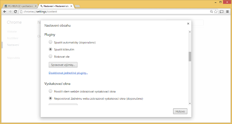 Výše zmíněné plug-iny jsou obecně poměrně nespolehlivé. Jsou nejčastějším důvodem nestability a zamrzávání. Nejen z hlediska již probírané bezpečnosti proto přijde vhod jejich moderní správa (tzv. click-to-play). Plug-iny dle současných potřeb a požadavků dovedou zkrotit Google Chrome a Mozilla Firefox. Naopak Internet Explorer moderní správou plug-inů stále nedisponuje. Neumožňuje jednoduše spustit konkrétní plug-in pro konkrétní účel až na vyžádání uživatele.