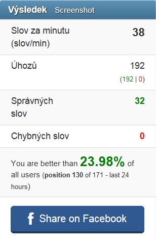 Clorky respekt ... :) Říkal jsem si, že nepůjdu spát dokud tě netrumfnu :D ale max jsem z toho vytáhnul 6 místo před cca hodinou s 509 a 5 chybami, ale neukládal jsem :/