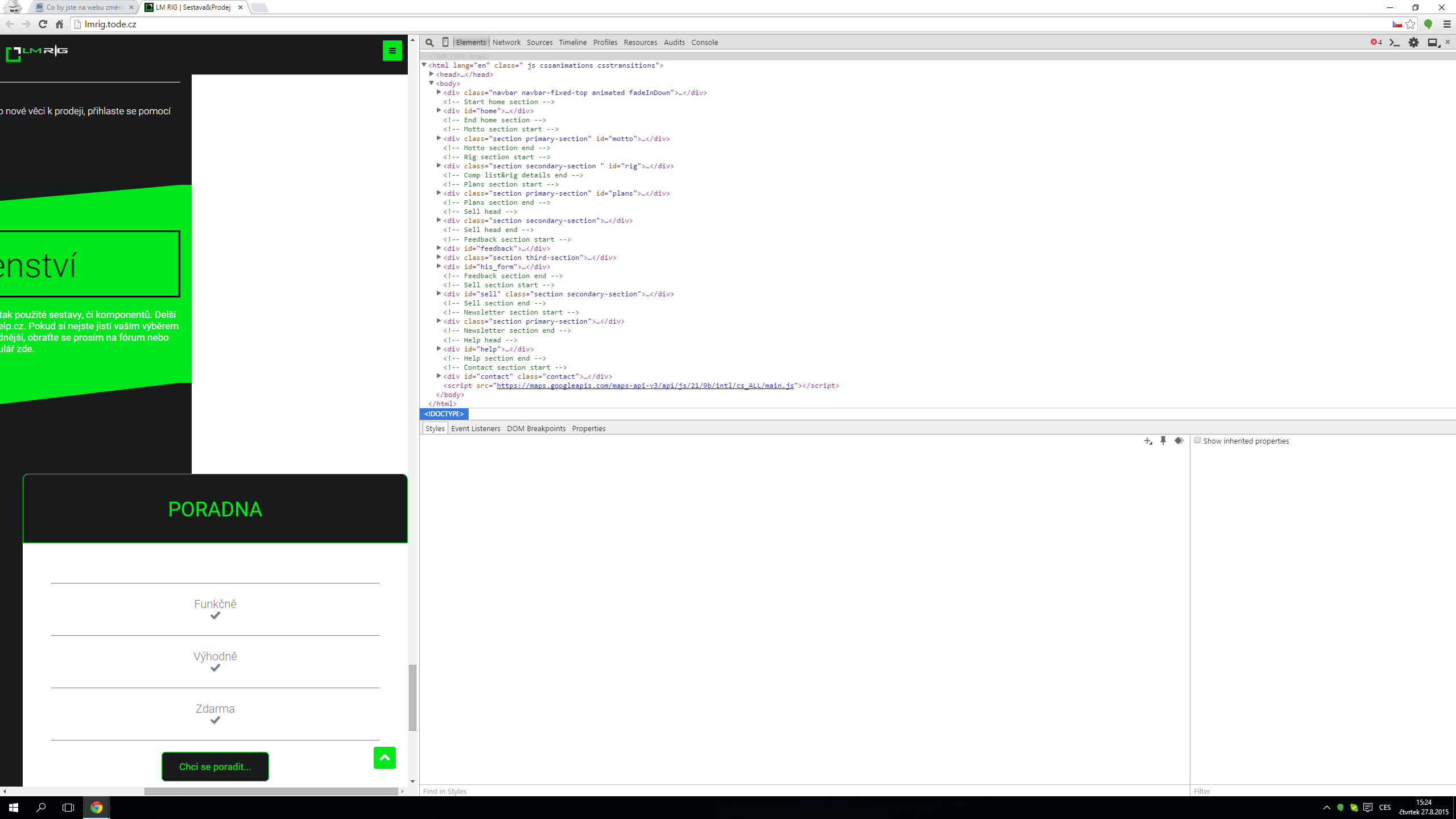 Hodně pěkný web. Osobně bych zauvažoval o změně barvy v sekci sestava a prodej. Něco míň svítivého by možná vypadalo o trochu líp. Jinak mně se líbí hodně. ;)