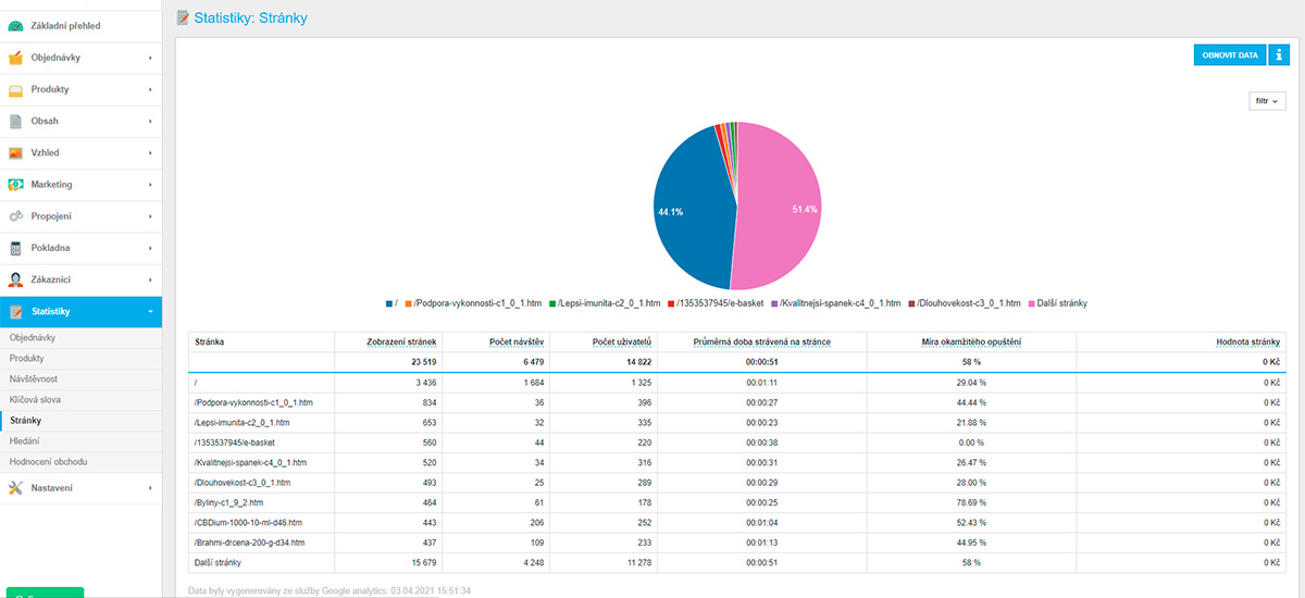 - Statistiky prodejů jednotlivých položek, statistiky návštěvnosti, klíčových slov, atd.