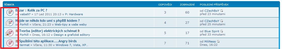 - taky bych potřeboval, vzhledek k přehlednosti nějak nastavit to, aby vlákno zčervenalo pokud by se v něm objevil nový přízpěvek.(v příloze je obrázek jak to myslím)