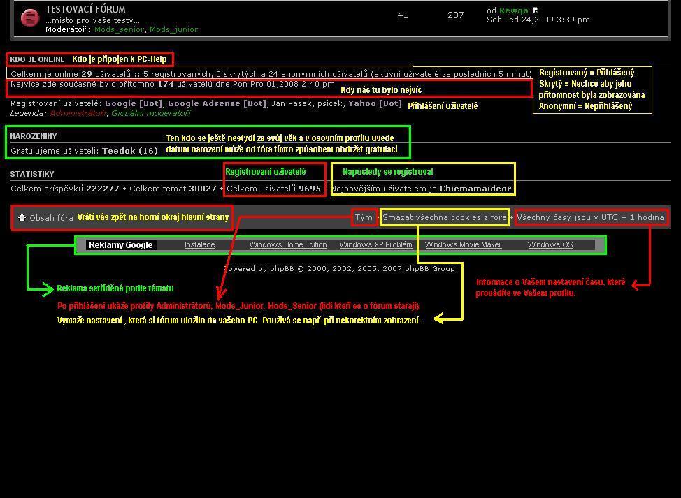 V přiloženém obrázku, který si kliknutím na něj zvětšíte, najdete snad dostatečný popis jednotlivých odkazů zápatí hlavní strany fóra PC-Help:
