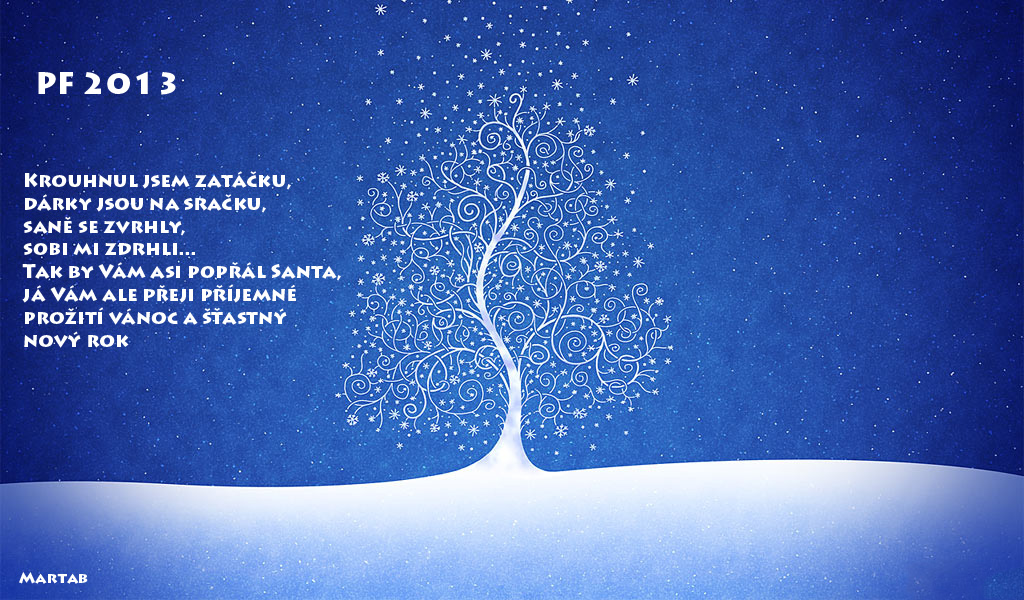 Taktéž Vám všem přeji krásné Vánoce, hodně štěstí, pohody a hlavně zdraví (to je to nejdůležitější..!) v roce 2013.