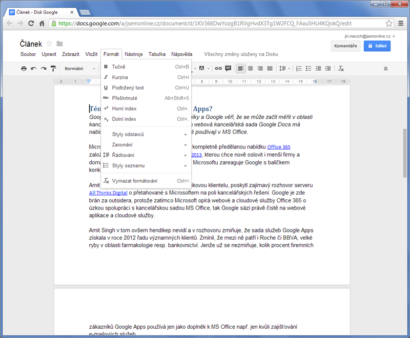 Amit Singh, viceprezident Googlu pro podnikovou klientelu, poskytl zajímavý rozhovor serveru All Thinks Digital o přetahované s Microsoftem na poli kancelářských řešení. Google je zde brán za outsidera, protože zatímco Microsoft opírá webové a cloudové služby Office 365 o úzkou spolupráci s kancelářskou sadou MS Office, tak Google sází právě čistě na webové aplikace a cloudové služby.