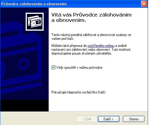 Start - Všechny programy - Příslušenství - Systémové nástroje - Zálohování.