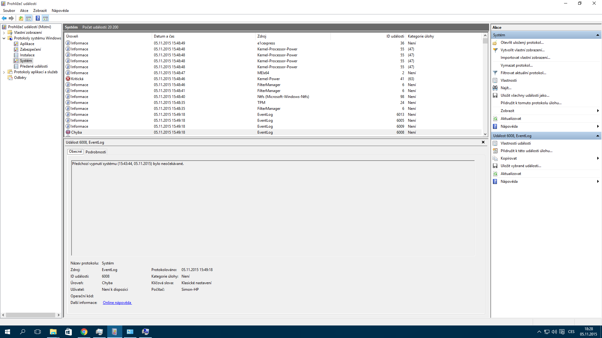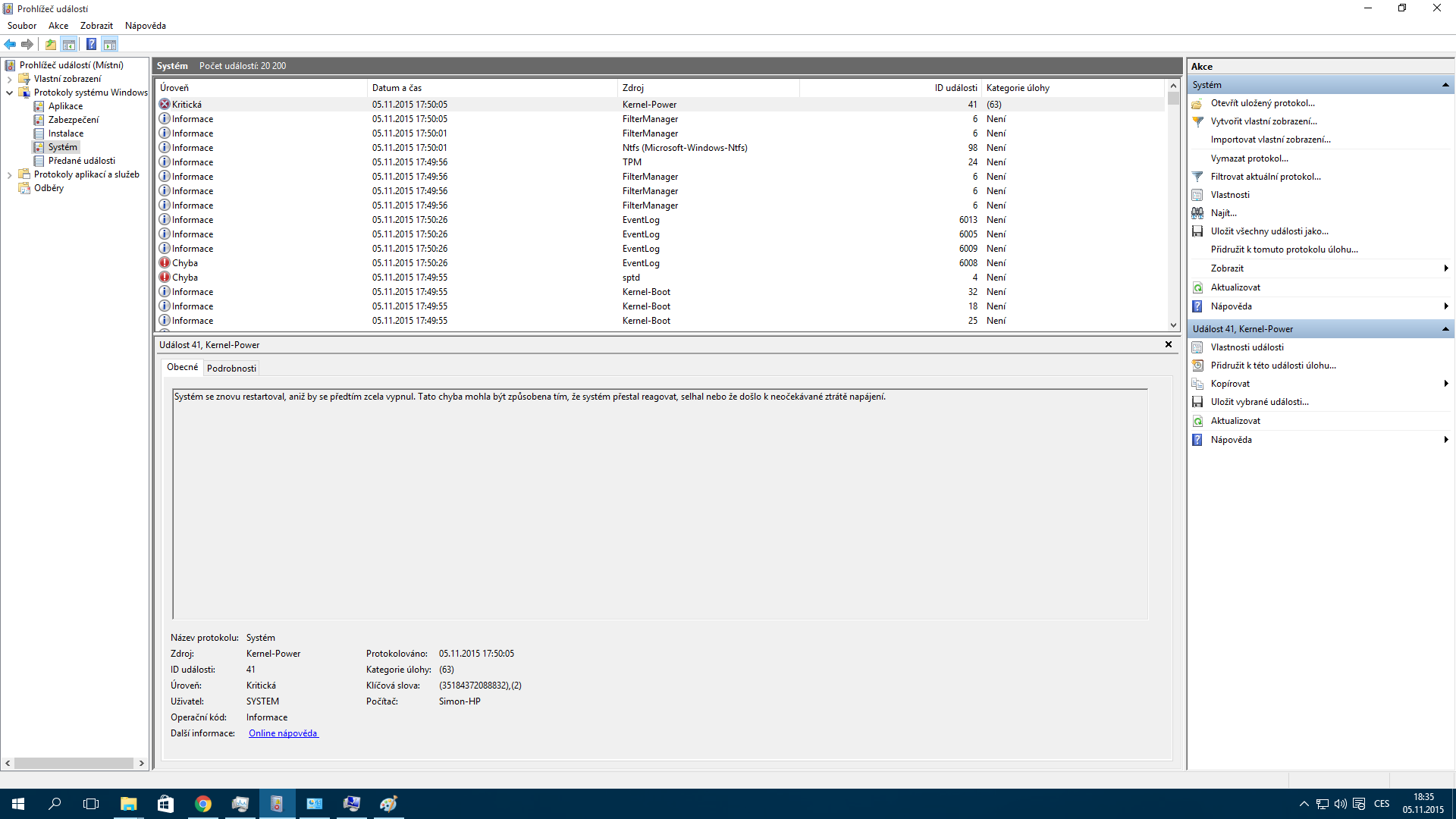 Přikládám fotky + výpisy z Prohlížeče událostí