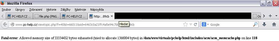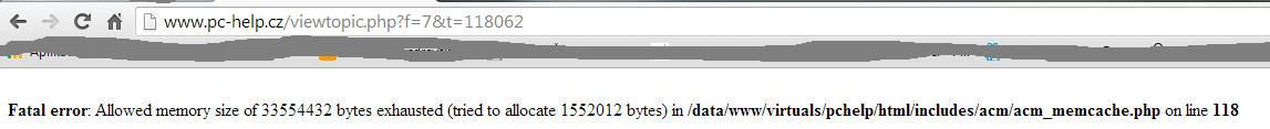 Fatal error: Allowed memory size of 33554432 bytes exhausted (tried to allocate 1564948 bytes) in /data/www/virtuals/pchelp/html/includes/acm/acm_memcache.php on line 118