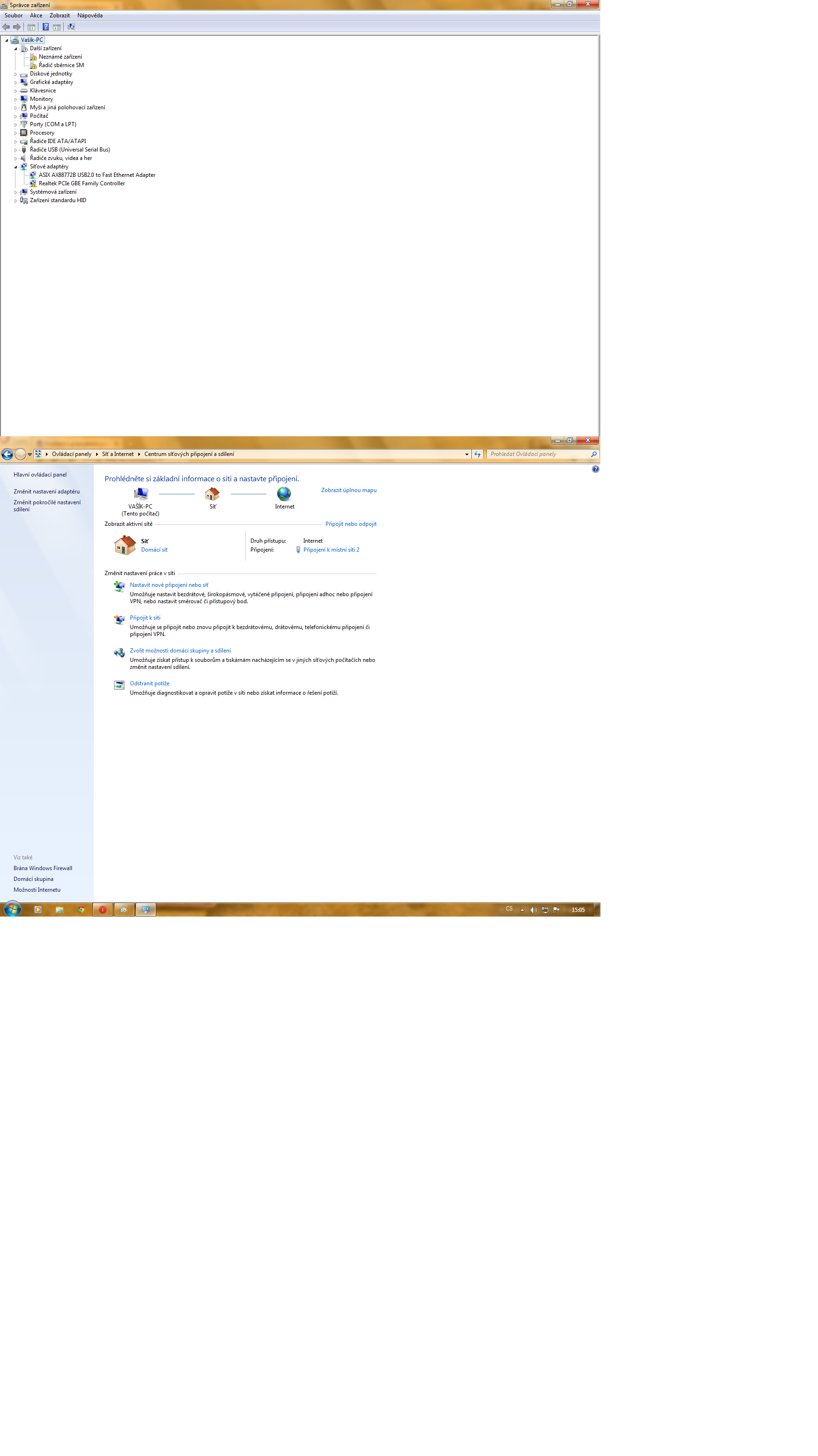 Dej sem do přílohy screeny ze Správce zařízení a Síťové připojení.