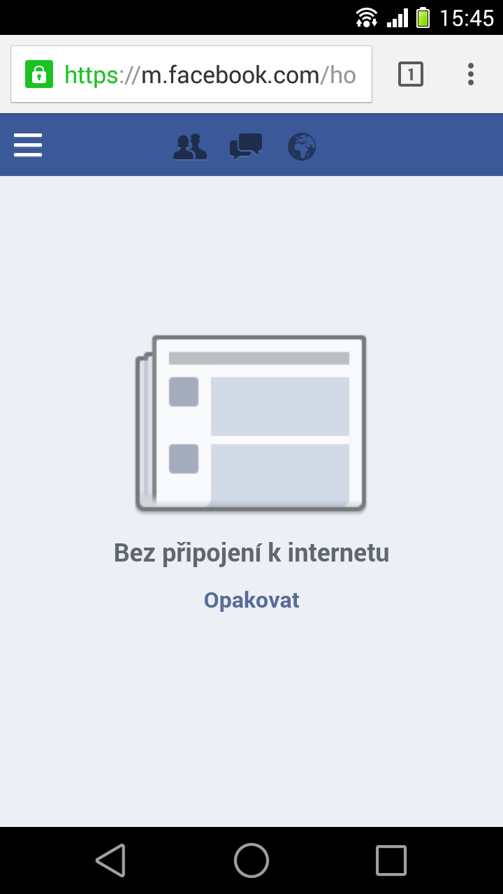 mám problém, se kterým jsem se ještě nesetkal. Když na mobilu Sony Xperia SP s Androidem 4.3 otevřu facebook v prohlížeči Chrome, vše je v pořádku a a zobrazí se mi poslední příspěvky přátel. Pak si ale zobrazím například chat a potom když si chci opět zobrazit poslední příspěvky přátel, zobrazí se hláška, že nejsem připojený k internetu, přestože jsem. Když stránku aktualizuji, příspěvky přátel se zobrazí. Pokud však zobrazím zase třeba chat či něco jiného, problém se opakuje.