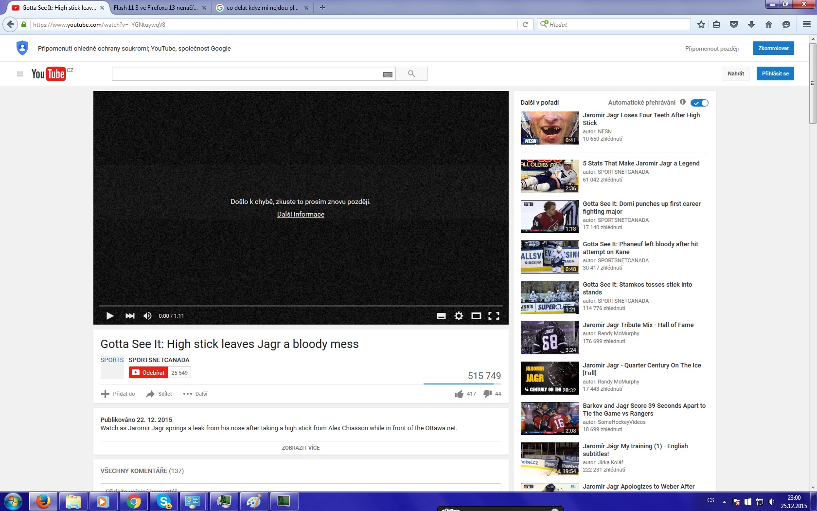 Problém s přehráváním na youtube