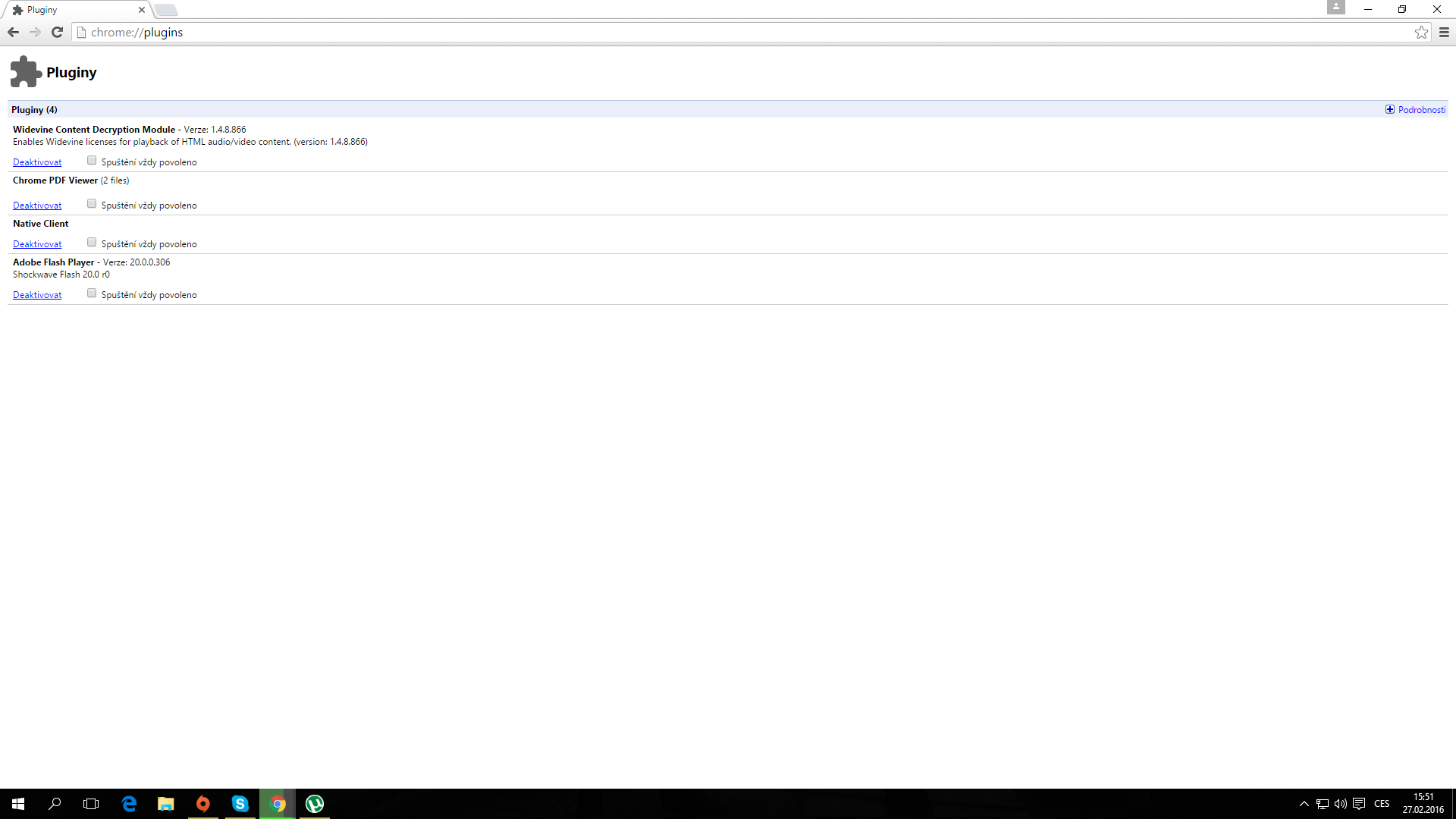do adresy napiš chrome://plugins a dej sem screenshot, nebo to označ jako text a zkopíruj to sem, já se v tom nějak prohrabu :D