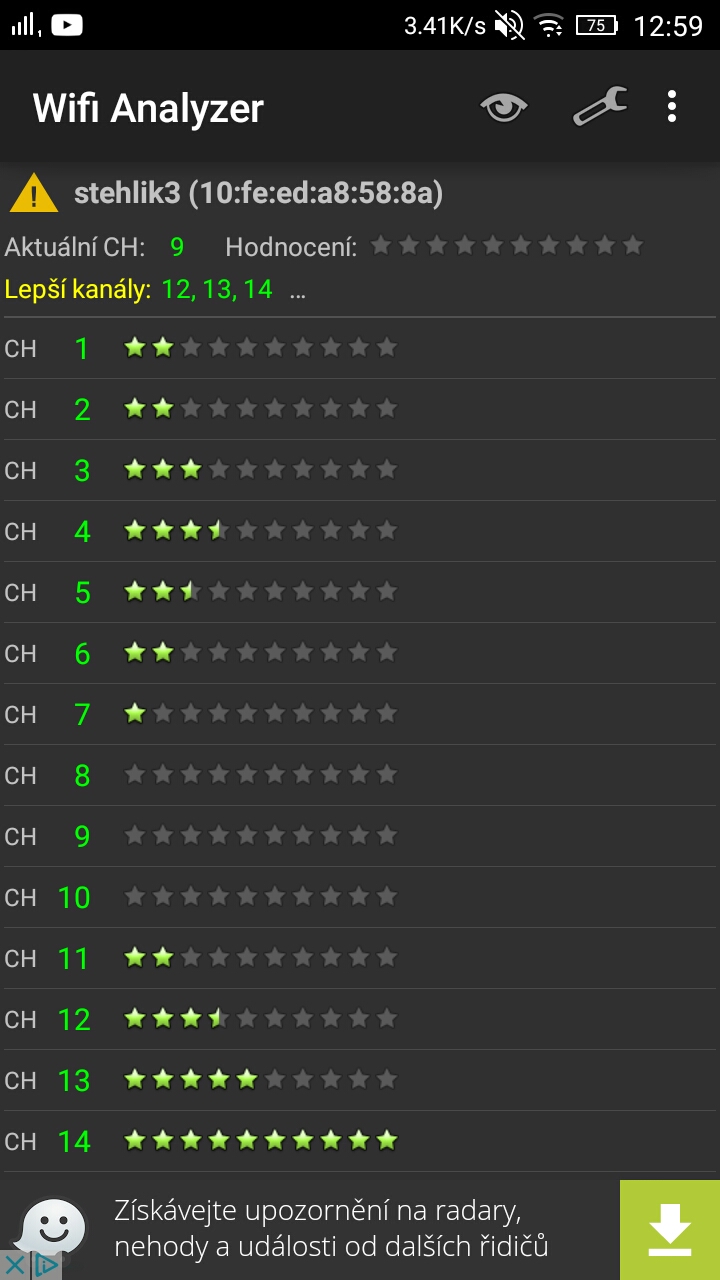 Nebo můžeš zkusit, pokud máš androida, stáhnout Wifi analyzer, ukazuje na jakých kanálech jedou ostatní wifi.