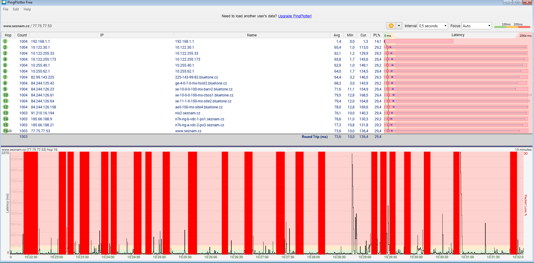 Vyzkoušel jsem to teda a pořád to vypadávalo a k tomu mi tam vyskočil i ping 3552ms. Ono jen když jsem spustil ping plotter, tak mi to za minutu 2x vypadlo a ping byl v průměru nad 500ms.