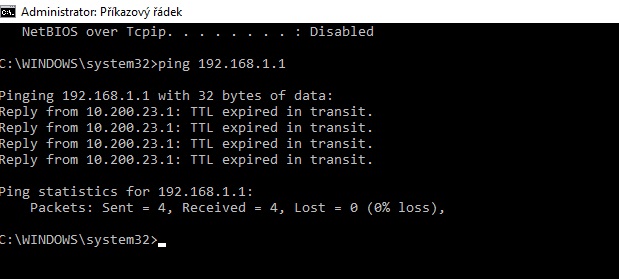 Děkuji za ochotu. Přikládám screeny z ipconfig a ping. ipconfig jsem stihl i ve výpadku.