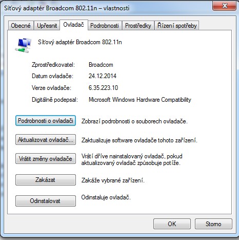 Tu verzi broadcomu, co píšeš, jsem tam měla a dělalo to tuhle chybu, jak píšeš. Pak jsem zkusila aktualizaci přes Driver Booster a nějaké to našlo, takže teď mám aktualizace viz fotky, ale tu chybu to dělá stejně, jen teď moc nevím, jak na případný "downgrade" zpátky na ty původní verze.