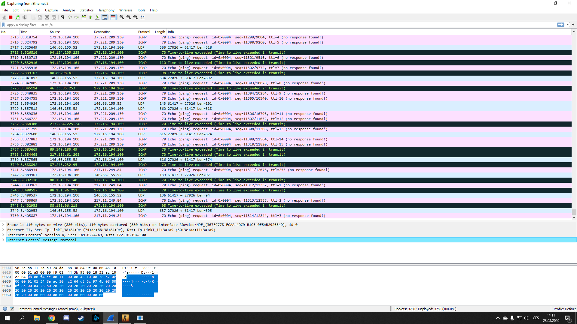 Zde je screen z Wiresharku, ale opravdu nevím jestli jsme ho pořídil správně.