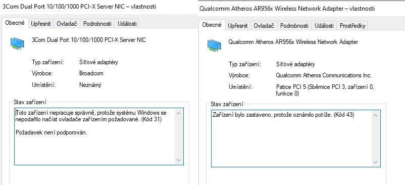 Daj sem radšej screen z Správca zariadení a rozklikni sieťové adaptéry.