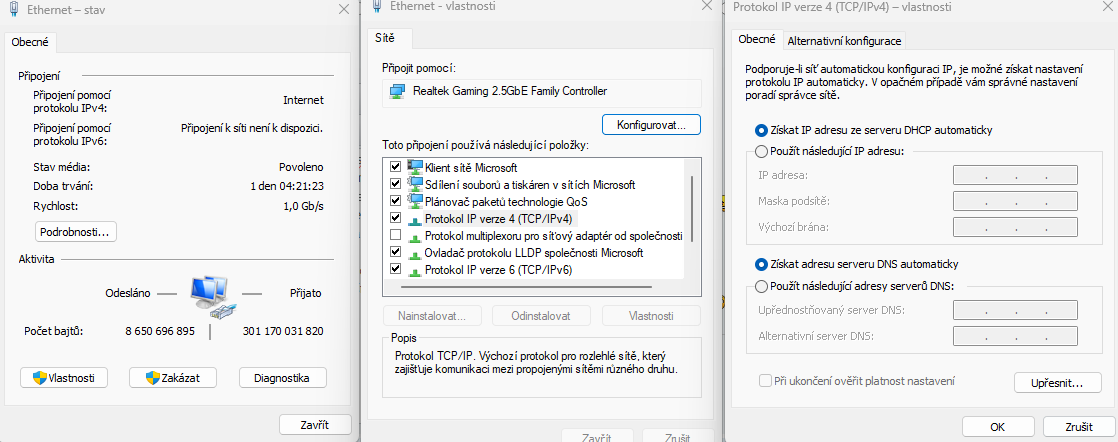 Četl sem si pár podobných témat i návod "Jak na diagnostiku sítě a zde je výpis.