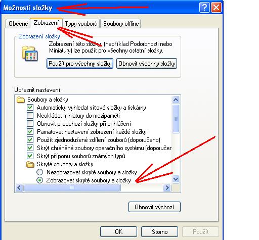 Nástroje - Možnosti složky - Zobrazit .....