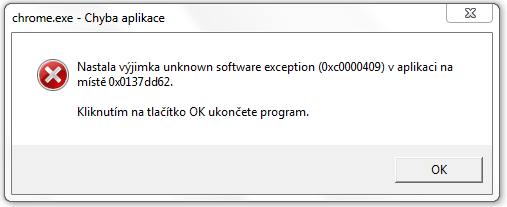 chtěl bych Vás poprosit o radu. Používám prohlížeč Google Chrome, u kterýho se mi objevily problémy. Čas od času při spuštění Chromu na mě vysokčí okno s chybovou hláškou, viz přiloženej obrázek.