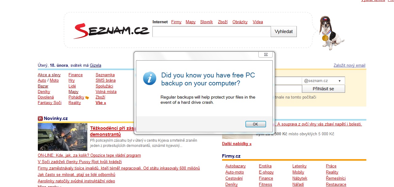 Ahoj všichni, chtěla bych požádat o radu. Před týdnem jsem aktualizovala firefox, od té doby mám problémy. Na některé dříve často používané stránky se vůbec nedostanu, když kliknu na domeček v pravém rohu, to samé, občas mi naskočí bílá stránka místo fungujícího odkazu, mail mám pořád odhlášený, přestože vždy zaškrtnu "zůstat trvale přihlášen" apod. A také, jak se zbavit věčně naskakující rámečku PC backup? Tohle je nejdůležitější. Dá se s tím něco dělat? Děkuji za radu.