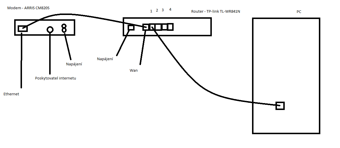 Vlož sem náčrtek (plánek) tvé sítě, kde bude nakresleno, jak máš co zapojeno. Uveď přesný typ a výrobce routeru a modemu.