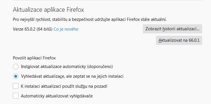 prosím jde u současného Firefoxu nějak vypnout automatická aktualizace ? Po nedávné aktualizaci se mně začaly nějaké stránky špatně graficky zobrazovat. V jiném prohlížeči stejná stránka byla ok, tak jsem to přisuzoval firefoxu. V nějaké diskuzi jsem vyčetl, že by mohlo pomoci si nainstalovat starší verzi, tak jsem to vyzkoušel.