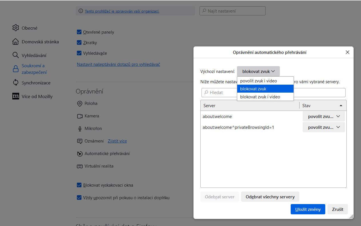 Nepíšeš prohlížeč. U firefoxu - nastavení / Soukromí a zabezpečení / Oprávnění / Automatické přehrávání.