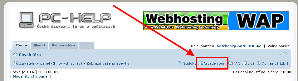 Vážení návštěvníci PC-HELP, dovolte mi oznámit vám novinku v našem fóru. Tou je protentokrát opravdu robustní a propracovaný MOD: Arcade room. (v originálu phpBB Arcade).