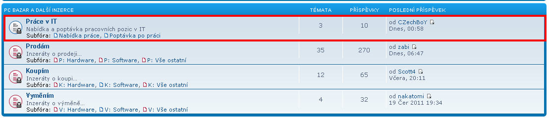 rád bych vás informoval o vytvoření nové kategorie ve fóru s názvem "Práce v IT".