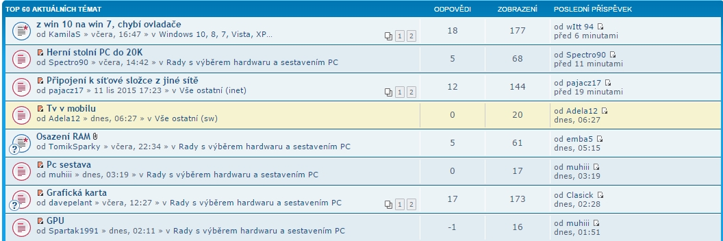 Smazané téma se stále zobrazuje v TOP 60 a ukazuje -1 příspěvků