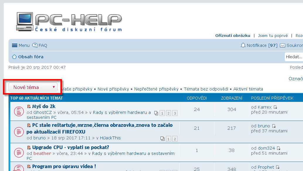 Nová funkcionalita, věřím, nebude využívaná pouze nováčky, ale i ostatními uživateli...založení nového tématu se tímto usnadní. Nebude třeba se proklikávat do konkrétní sekce, téma již založíte přímo z úvodní stránky. Snad se tato jednoduchá, byť poměrně efektivní, úprava bude líbit