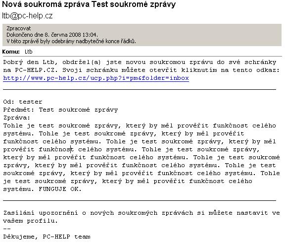 rád bych vás informoval o nově instalovaném MODu, který zajistí vkládání obsahu soukromé zprávy do upozornění na novou soukromou zprávu (pro pamětníky nic nového, tohle jsme už ve v2.2 měli ;-) ). Znamená to, že pro obsah zprávy již nebudete muset vstupovat na fórum a otevírat svoji schránku.