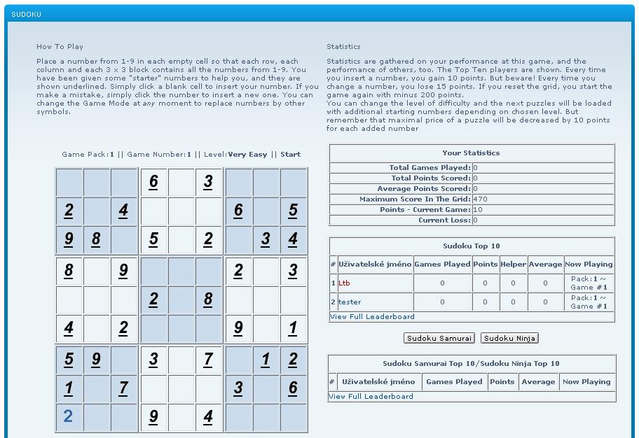 - Sudoku by mělo být již dnes plně funkční, narazíte-li na nějakou komplikaci (kromě toho překladu), dejte mi prosím vědět přes SZ nebo v sekci "Připomínky k fóru"