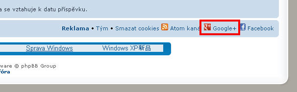 Odkaz na Google+ stránku je umístněn rovněž v patičce fóra: