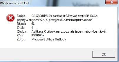 Tento skript provádí kontrolu a odeslání excelového souboru na dané emaily. Dokud byl daný soubor uložen ve verzi excelu 2003 /soubor.xls/, vše fungovalo jak má. Nyní došlo k uložení souboru v novém formátu /soubor.xlsx/ a bohužel skript už nepozná změnu souboru.