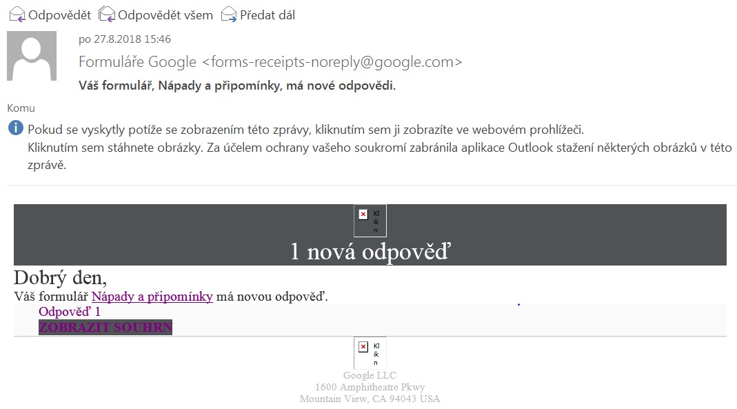 Google formulář - text odpovědi do mailu, ne přes odkaz